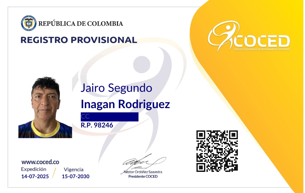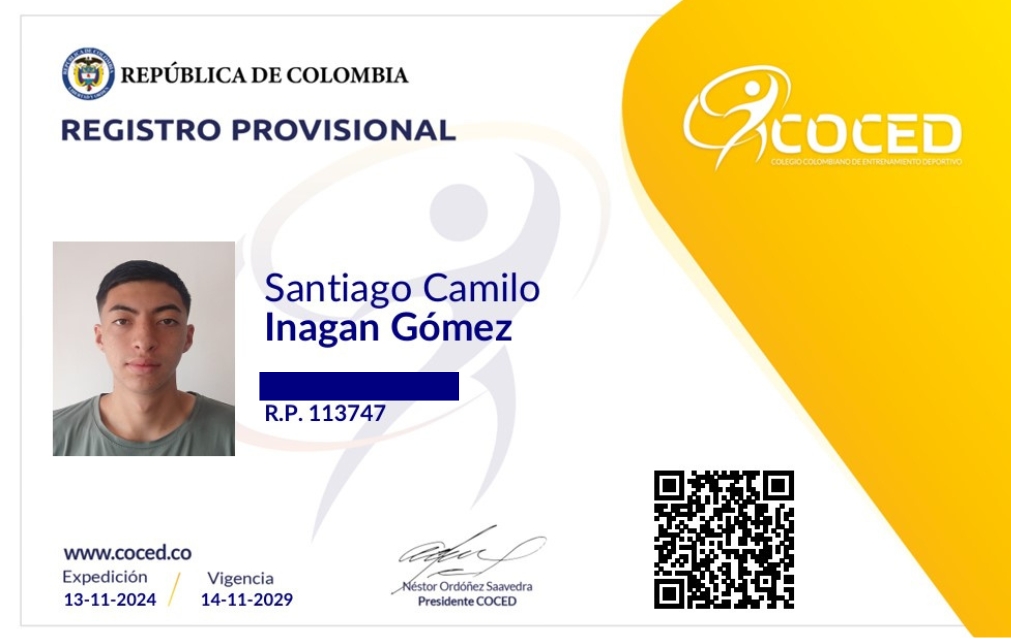Gestor Deportivo y Entrenador Deportivo con Tarjeta N° 113747 del Colegio Colombiano de Entrenamiento Deportivo COCED.